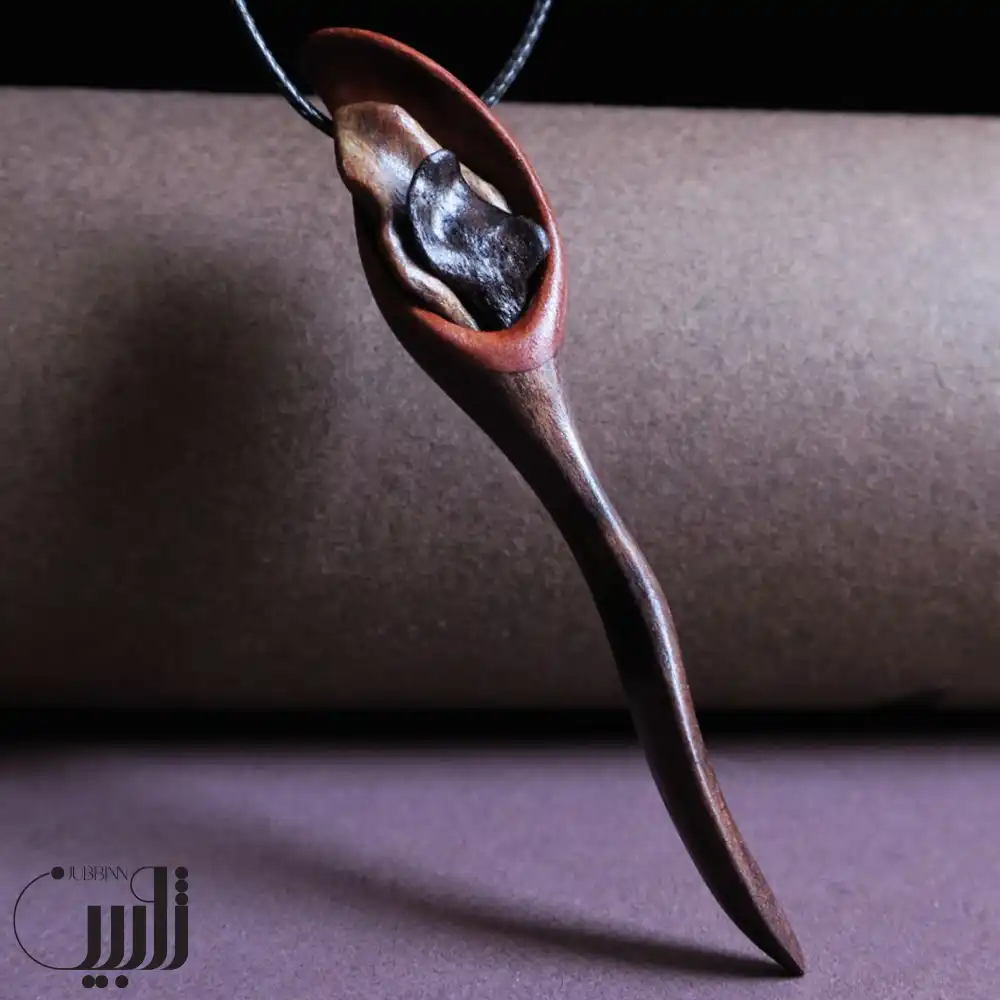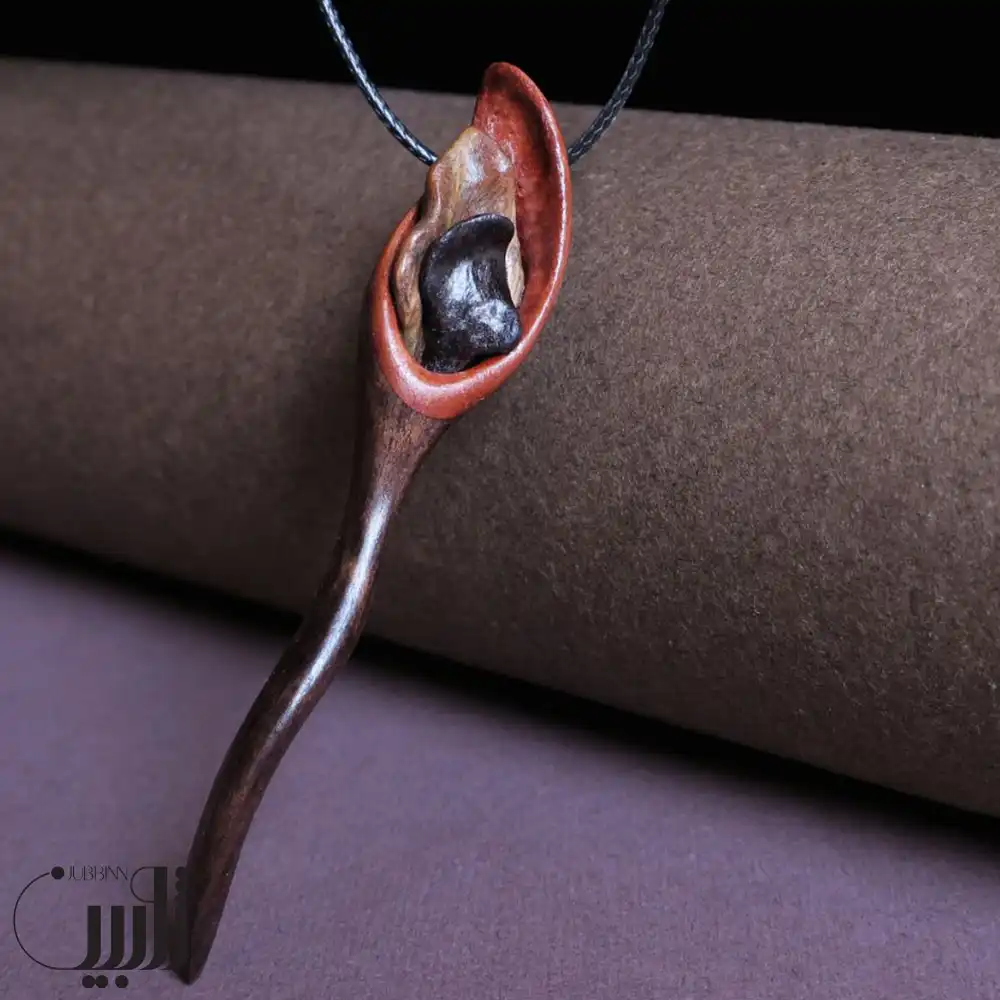 گردنبند روح درخت: تجسمی از جوهر طبیعت «روح درخت»، نمادی از روح و جوهره حیات است که در یک فرم ارگانیک به نمایش گذاشته شده است. بخش بیرونی، همچون یک غلاف محافظ، با انحنای آرام و سیال خود، هسته درونی و تیره را در آغوش میگیرد. این تضاد بصری بین فرم محافظ و هسته پنهان، داستانی از تولد، رشد و محافظت از ارزشهای اصلی را روایت میکند. «روح درخت» نه تنها زیبایی بصری، بلکه حسی از قدمت، اصالت و پیوندی ناگسستنی با قلب طبیعت را منتقل میکند. این گردنبند چوبی، یادآور این است که عمیقترین زیباییها در ذات و هسته پنهان هر موجودی قرار دارد. 🔹ویژگیهای محصول: ✔ متریال مورد استفاده: این گردنبند چوبی با دقت از ترکیب چهار نوع چوب مرغوب و ارزشمند خلق شده است: چوبهای گردو و عناب با طیفهای گرم و بافتدار خود، بخش بیرونی و محافظ را تشکیل میدهند و چوب تولیپ و آبنوس با رنگهای تیره و غنی، هسته درونی اثر را میسازند. این ترکیب هوشمندانه از متریال چوب، به این اثر هنری عمق و معنا میبخشد. ✔ طراحی مفهومی این گردنبند، با الهام از ذات طبیعت، فرمی پویا و در عین حال متعادل را به نمایش میگذارد. «روح درخت» از طریق تضاد رنگ و بافت، به یک اثر هنر چوب زنده تبدیل شده که توجه هر بینندهای را به خود جلب میکند. ✔ این اثر هنری یک محصول کاملاً تک نسخه است.